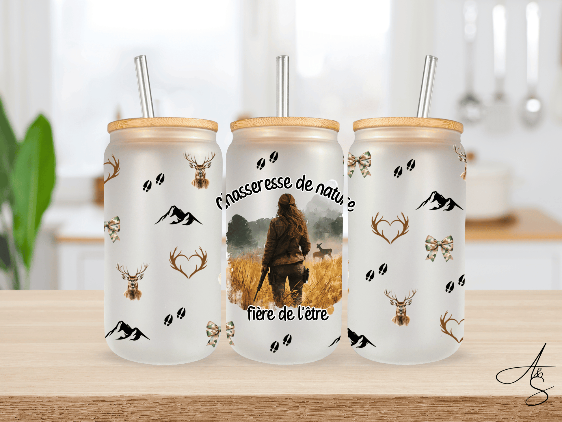Gobelet Givré 16 oz – Couvercle en Bambou & Paille en Verre