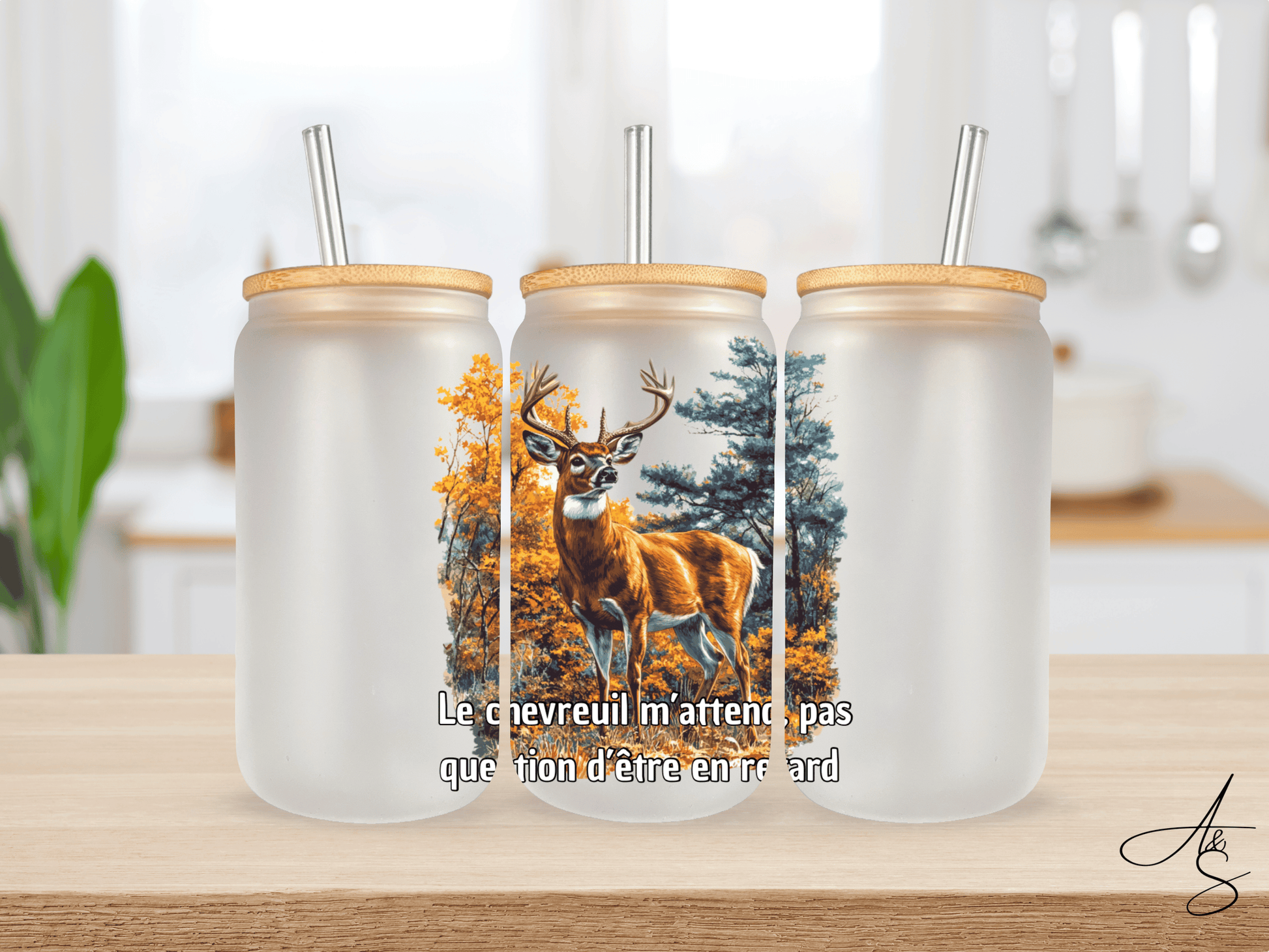 Gobelet Givré 16 oz – Couvercle en Bambou & Paille en Verre