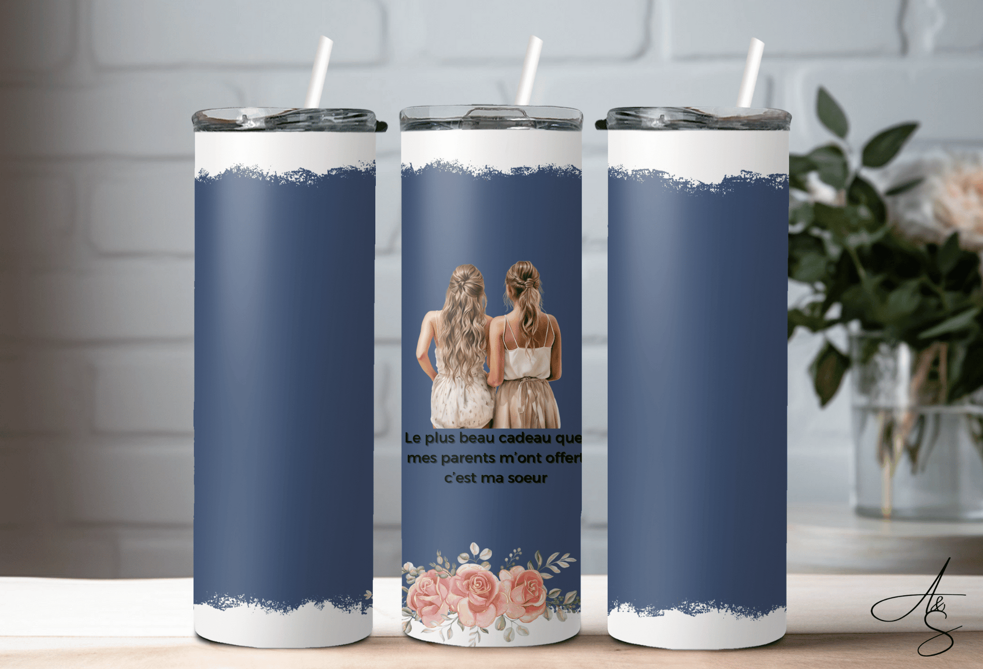 Verre/tasse isotherme 20 onz en acier inoxydable, avec couvercle et paille. Garde le froid durant plus de 24 heure et le chaud plus de 6 heure . Elle est parfaite pour tenir toute la journée !