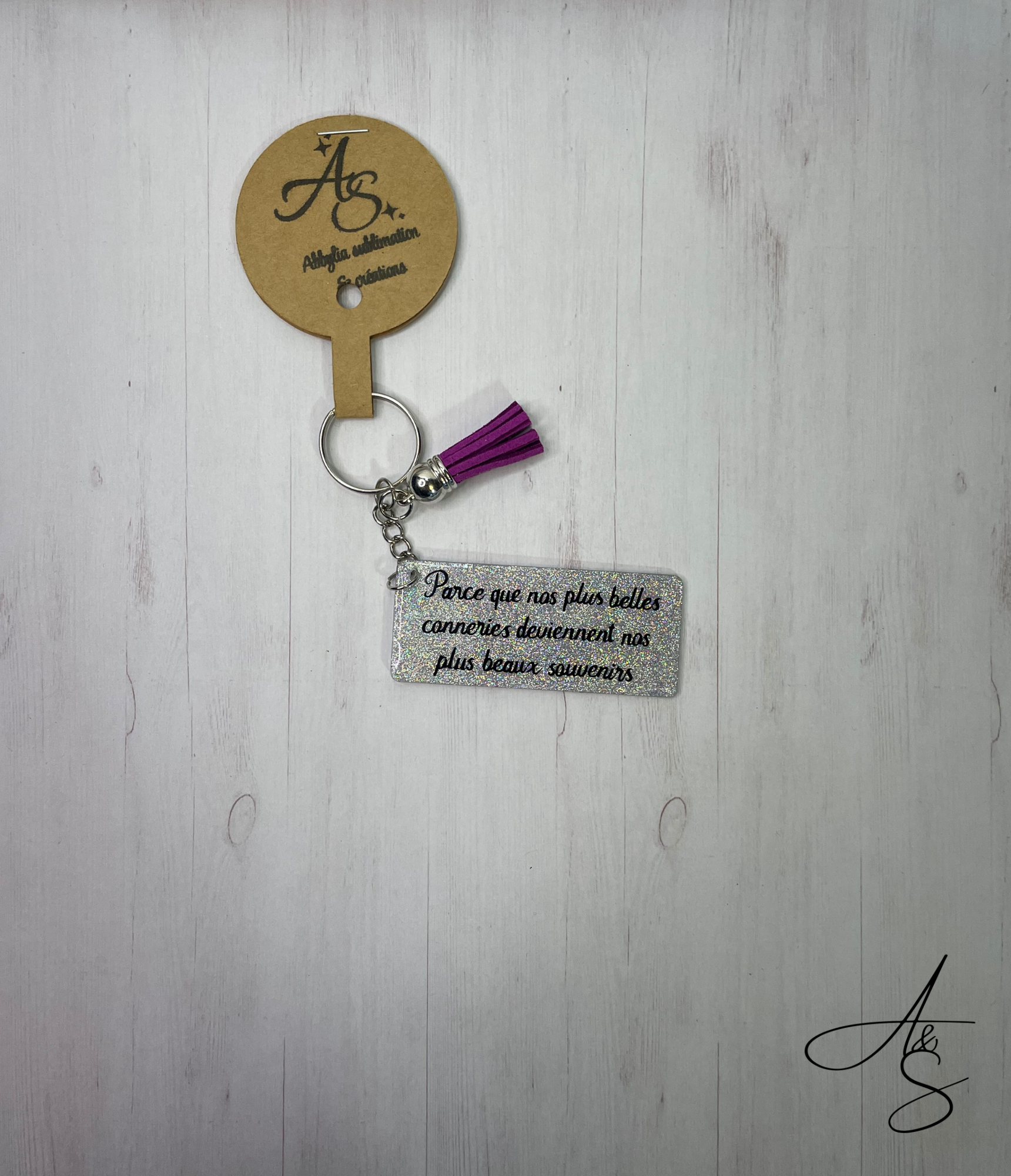 Porte-clé en acrylique recouvert d'une couche fine de résine UV pour s'assurer qu'il n'y est pas de dommage sur le vinyle. Fait à la main, ils sont donc unique ! Ce porte-clé fera certainement sourire et plaisir à reçevoir ! Un petit cadeau simple mais significatif !