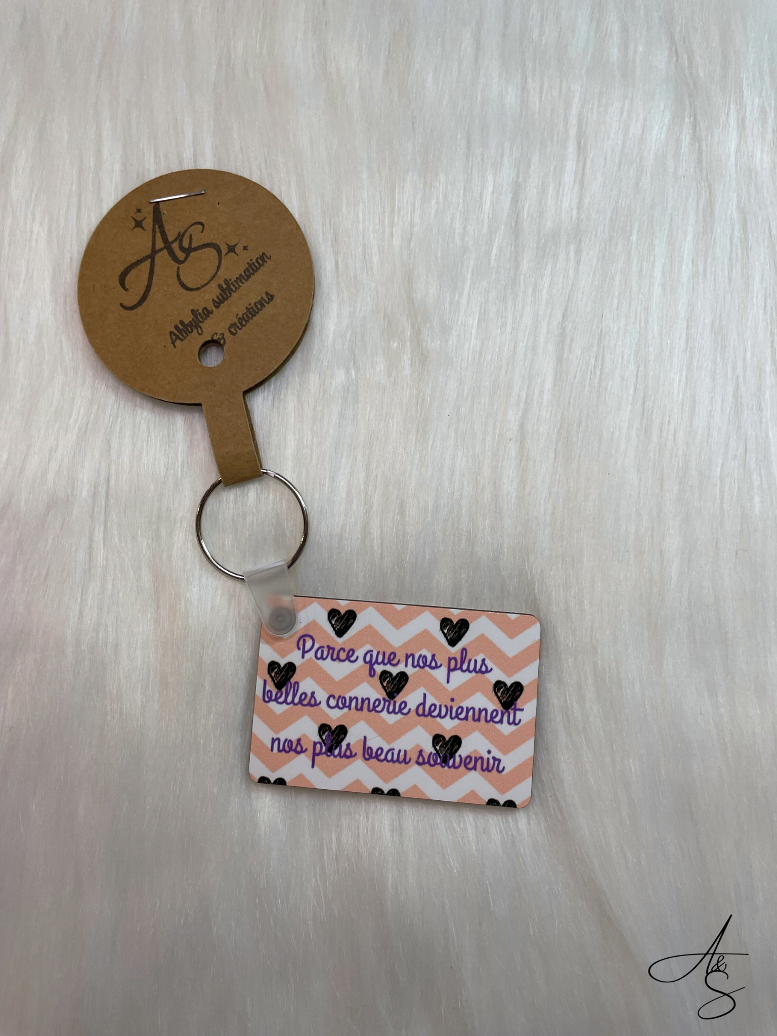 Porte-clés en mdf de haute qualité qui ajoute durabilité et style à vos articles de tous les jours. Avec son matériau robuste, vous pouvez lui faire confiance pour garder vos clés en sécurité. Fait à la main ce porte-clé fera certainement sourire et plaisir à reçevoir ! Un petit cadeau simple mais significatif !
