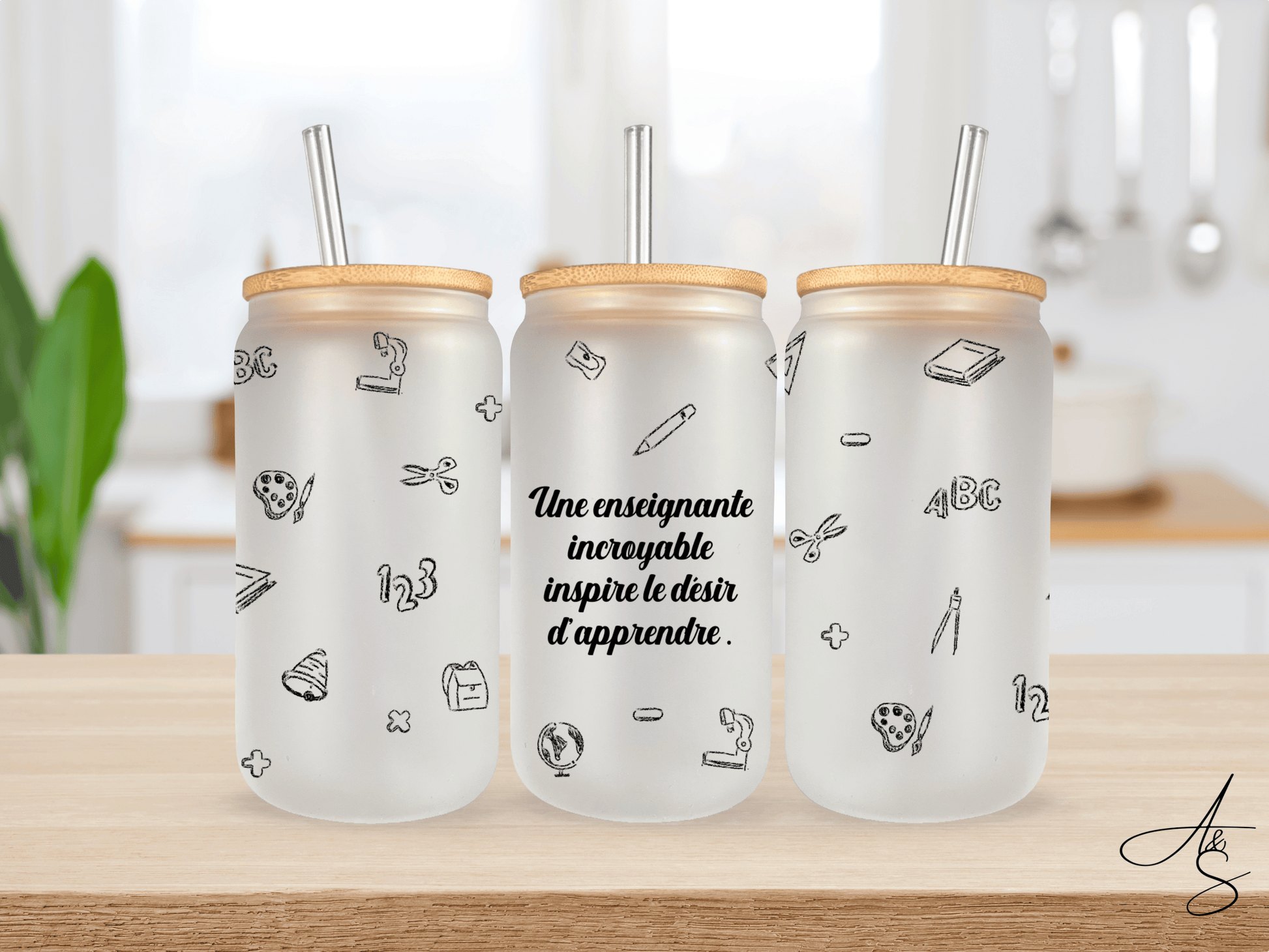Gobelet Givré 16 oz – Couvercle en Bambou & Paille en Verre